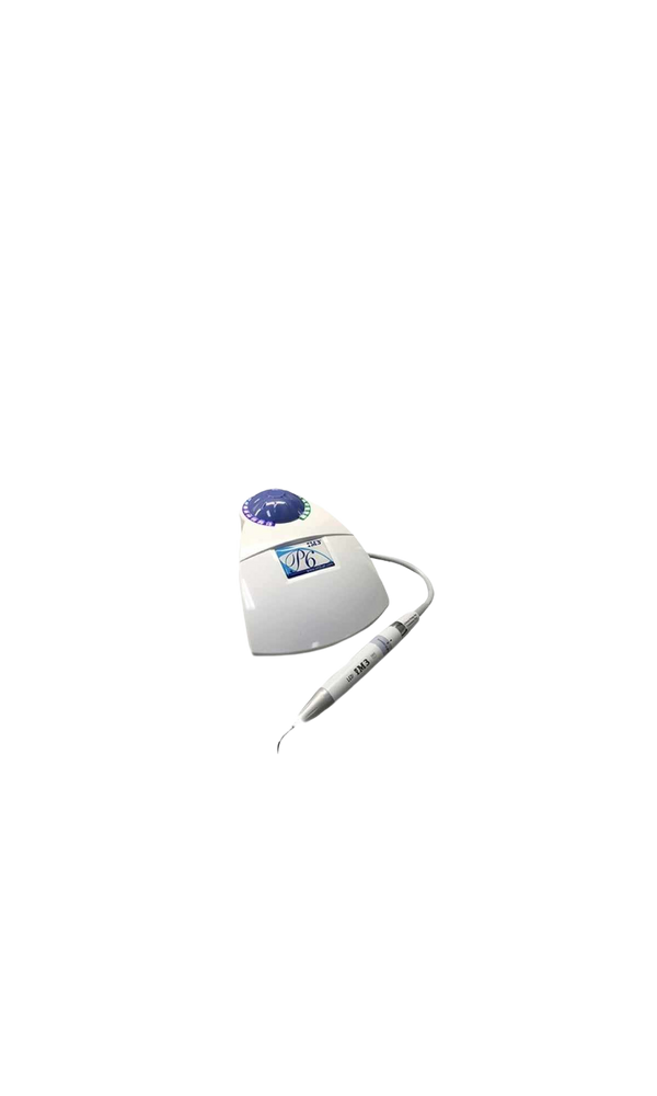 Skaler ultradźwiękowy piezoelektryczny iM3 P6 ma niewielkie rozmiary i wysoką jakość przy częstotliwości roboczej: 30 000 Hz. Działanie końcówki jest liniowe, a ruch końcówki służy do usuwania płytki nazębnej i kamienia nazębnego poprzez fizyczne skrobanie powierzchni zęba i może być stosowany do usuwania kamienia poddziąsłowego o grubości 1-2 mm. P6 obsługuje się pedałem nożnym i posiada wbudowane pokrętło regulacji mocy (1-20), które umożliwia ustawienie mocy wyjściowej na żądanym poziomie. System zawiera 4 końcówki (BS i 1 klucz do końcówek i można je podłączyć bezpośrednio do systemu wodnego dowolnej maszyny dentystycznej iM3. Zbiornik na wodę z pompką i złączkami (U2010) sprzedawany oddzielnie do samodzielnego użytku.